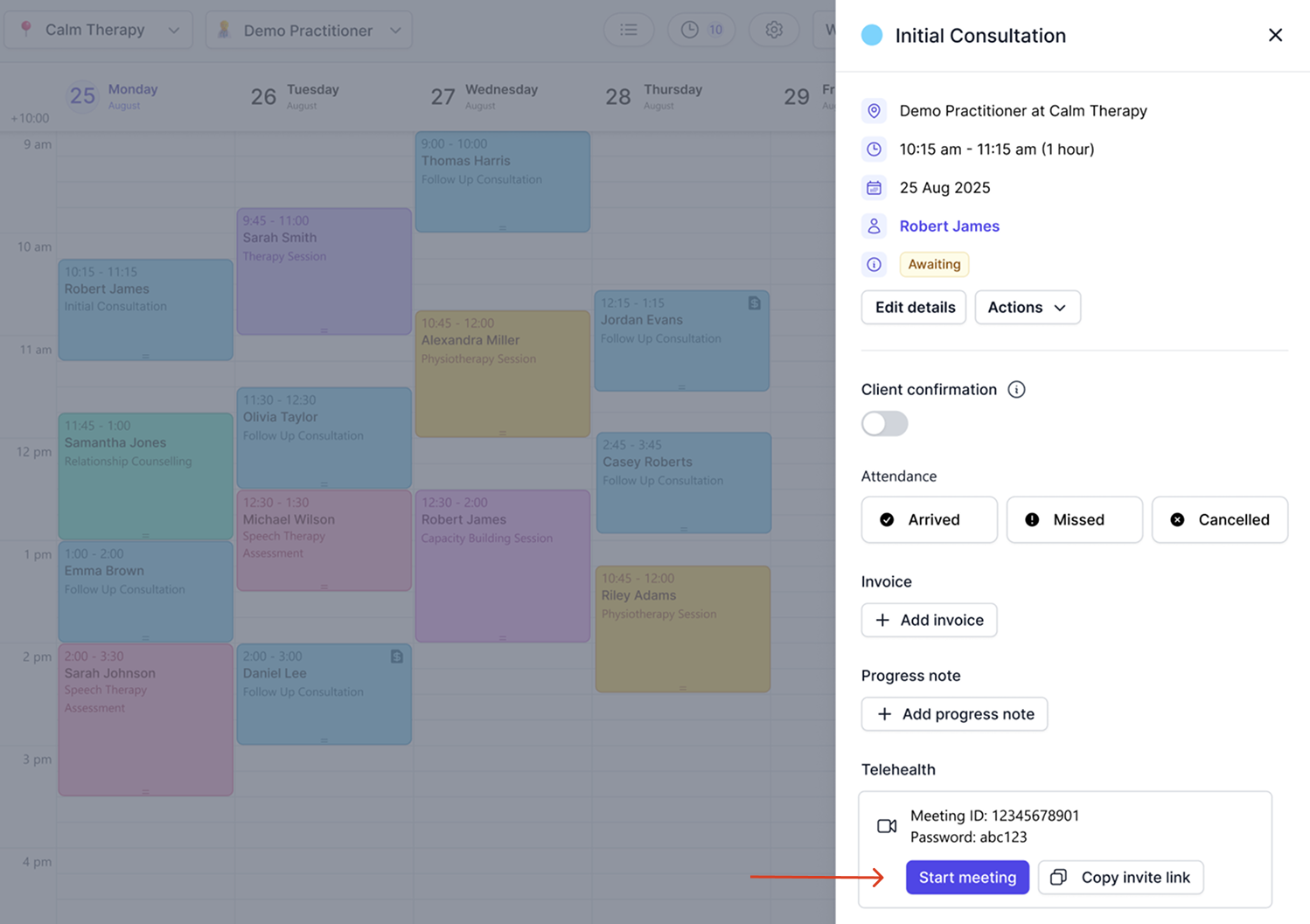 Once your Zoom account is connected to a practitioner profile in Caspen, you can create Zoom Meetings directly from the calendar. Haven’t connected Zoom yet? Follow our Set up Zoom integration guide.