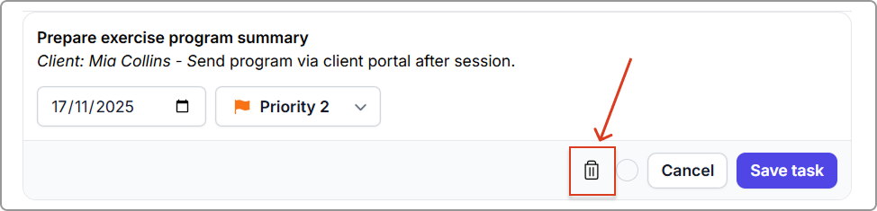 > Note: If you change the due date, the task will automatically move to the date it is now due.